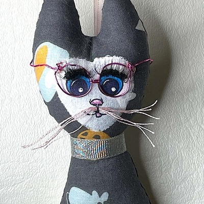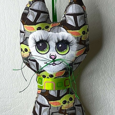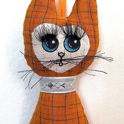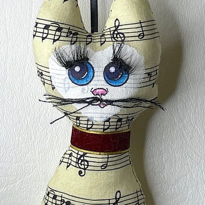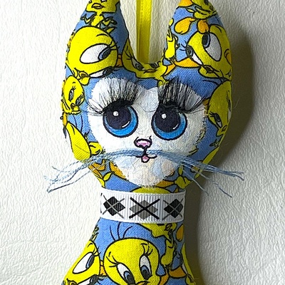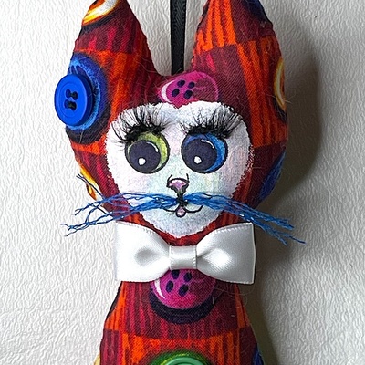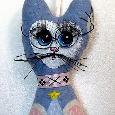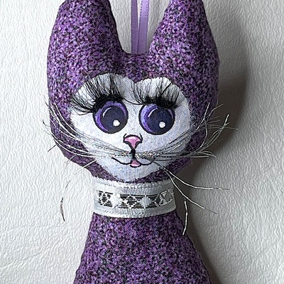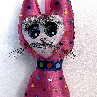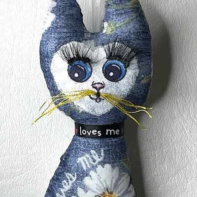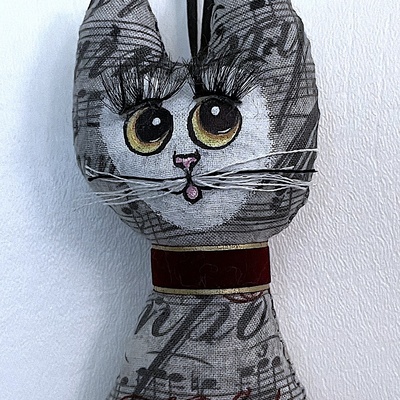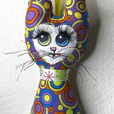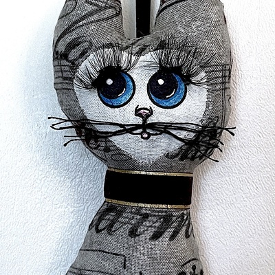 Lashies are fabric cats with real fake eyelashes, handmade by Tambra. These cats have a ribbon to show them off. Lashies are adorable for decorating your home, office, shelves, doorknobs, or anywhere else you need the purrfect decor!